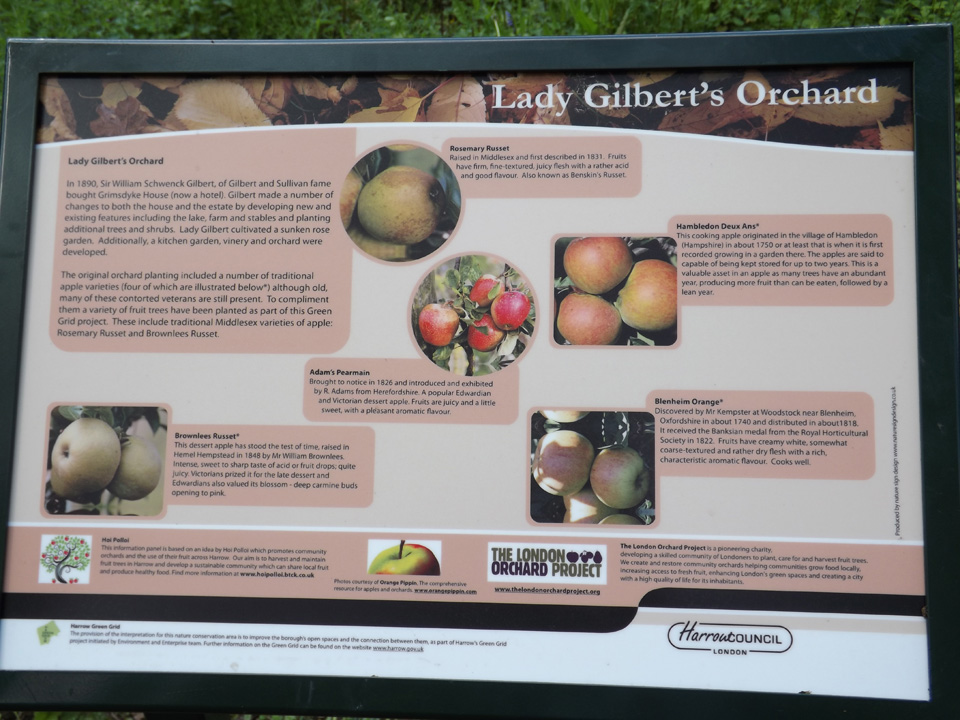 The Orchard was restored in recent years and marked with an information board. The orchard has plantings of several traditional apple varieties.